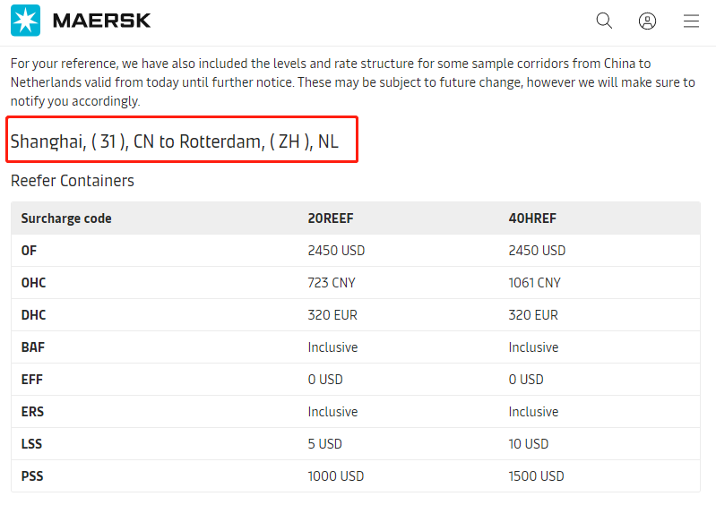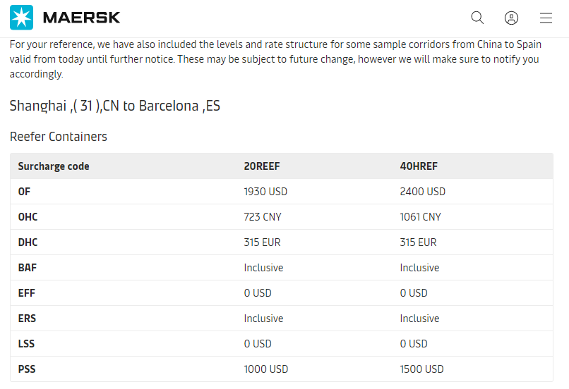 Maersk charges a peak season surcharge from the Far East to Europe